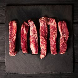 Cortes de rib eye en tiras, jugosos y llenos de sabor, con el equilibrio perfecto entre carne y marmoleo. Ideales para asar, saltear o preparar a la parrilla, ofrecen una textura suave y un sabor intenso en cada bocado, perfectos para compartir o disfrutar como platillo principal. calidad GANADERÍA REVUELTA.