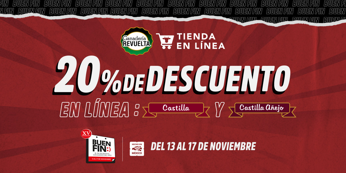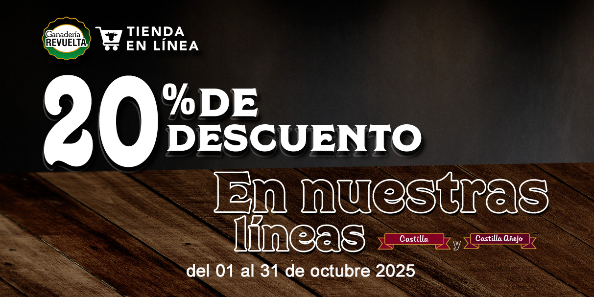 Vigencia 01 al 31 de Octubre del 2024 , no aplica con otras promociones, válido solo en Tienda en Línea de Ganadería Revuelta. Productos Participantes para el descuento son: